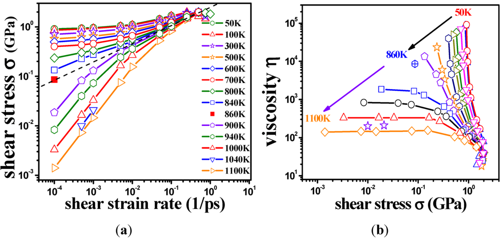 - Guan, P.; Chen, M.W.; Egami, T. On the stress-temperature scaling for steady-state flow in metallic glasses. Phys. Rev. Lett. 2010, 104, 187002. [Google Scholar]
