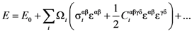 where rij is the distance between i-th and j-th atoms. We then impose uniform affine deformation and expand the total energy in terms of the affine strain, εαβ, where α and β are Cartesian coordinates. The energy response defines the atomic level stress, σiαβ, and the atomic level elastic modulus, Ciαβγδ;