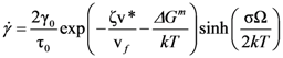 where G∞ is the instantaneous shear modulus and τM is the Maxwell relaxation time. Thus the flow is homogeneous. However, if the stress exponent, n = dlog γ/dσ, becomes large, any accidental stress concentration, for instance due to macroscopic extrinsic defects such as inclusion, will lead to locally accelerated flow, and deformation becomes inhomogeneous, usually resulting in formation of shear bands. So the non-linearity of the constitutive law for steady state flow, Equation (16), is the first requirement for inhomogeneous flow.