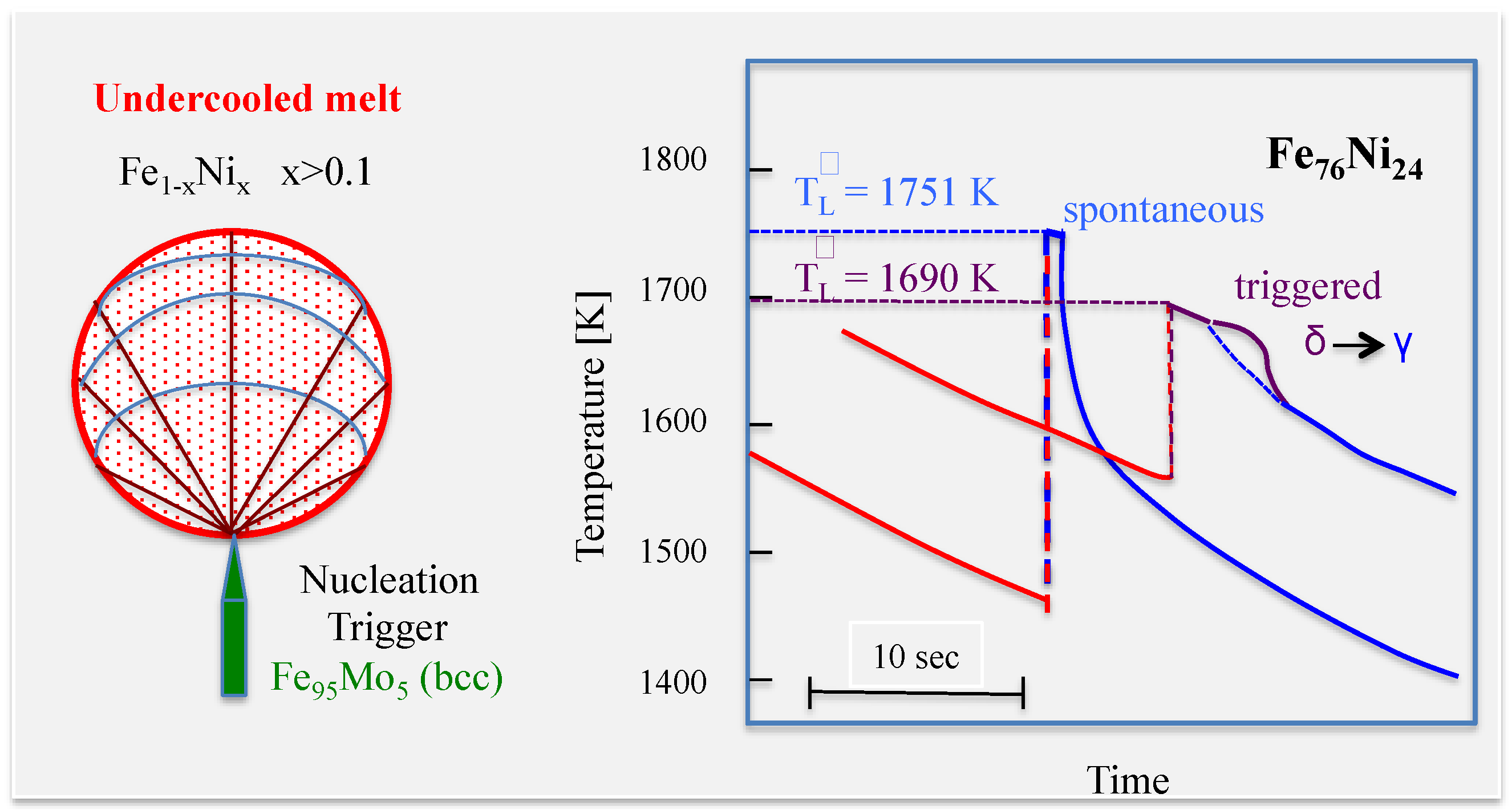 - Herlach, D.M.; Galenko, P.K. Rapid solidification: In situ diagnostics and theoretical modeling. Mater. Sci. Eng. A 2007, 449–451, 34–41. [Google Scholar] [CrossRef]