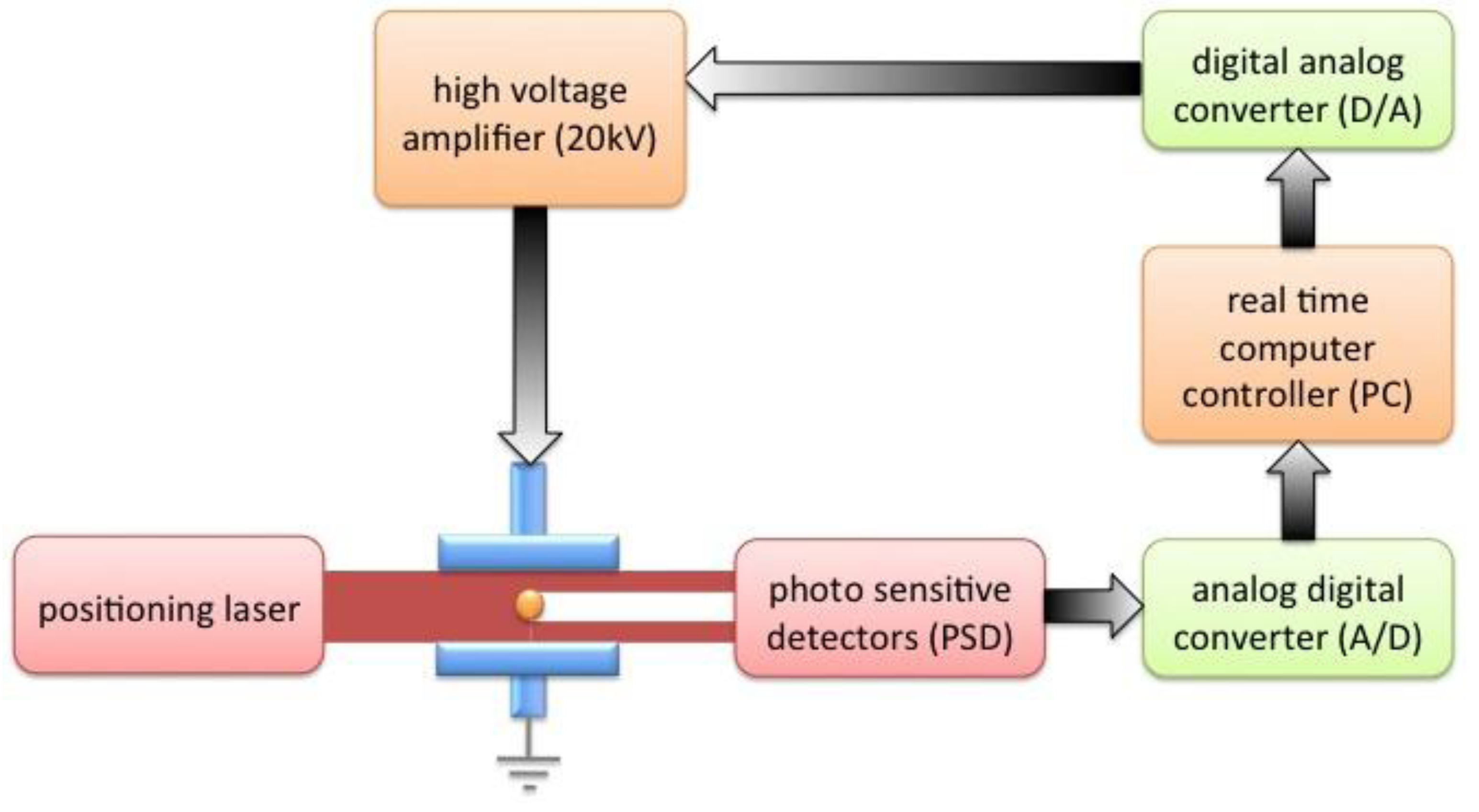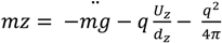 is the unit vector in z direction, i.e., parallel to the electrostatic field. A stable position of the sample is based on a local potential minimum at