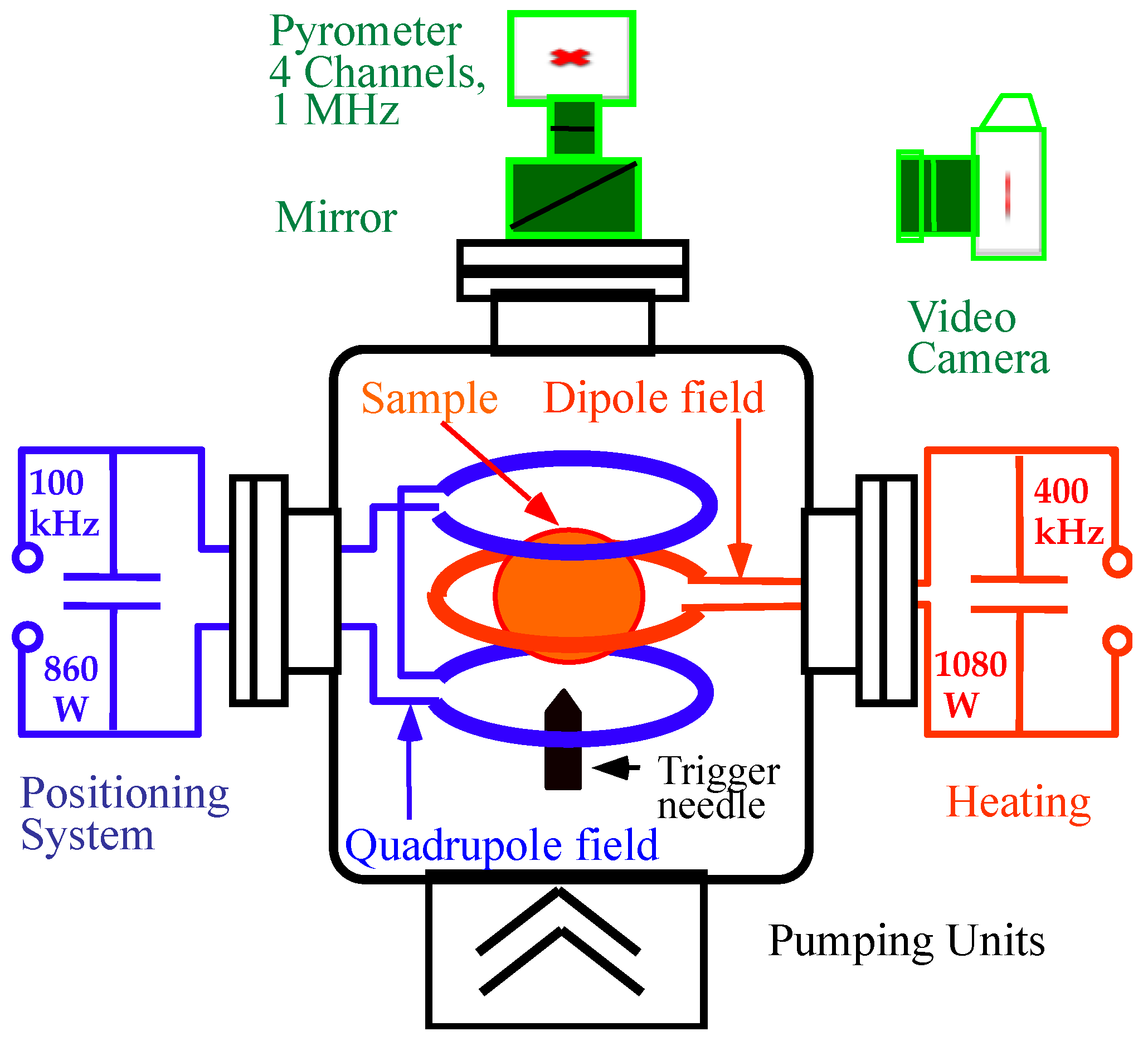 - Piller, J.; Knauf, R.; Preu, P.; Lohöfer, G.; Herlach, D.M. Containerless positioning and inductive heating under micro-g conditions. In Proceedings of the 6th European Symposium on Materials Sciences under Microgravity, Bordeaux, France, 2–5 December 1986; ESA SP-256. pp. 437–444.