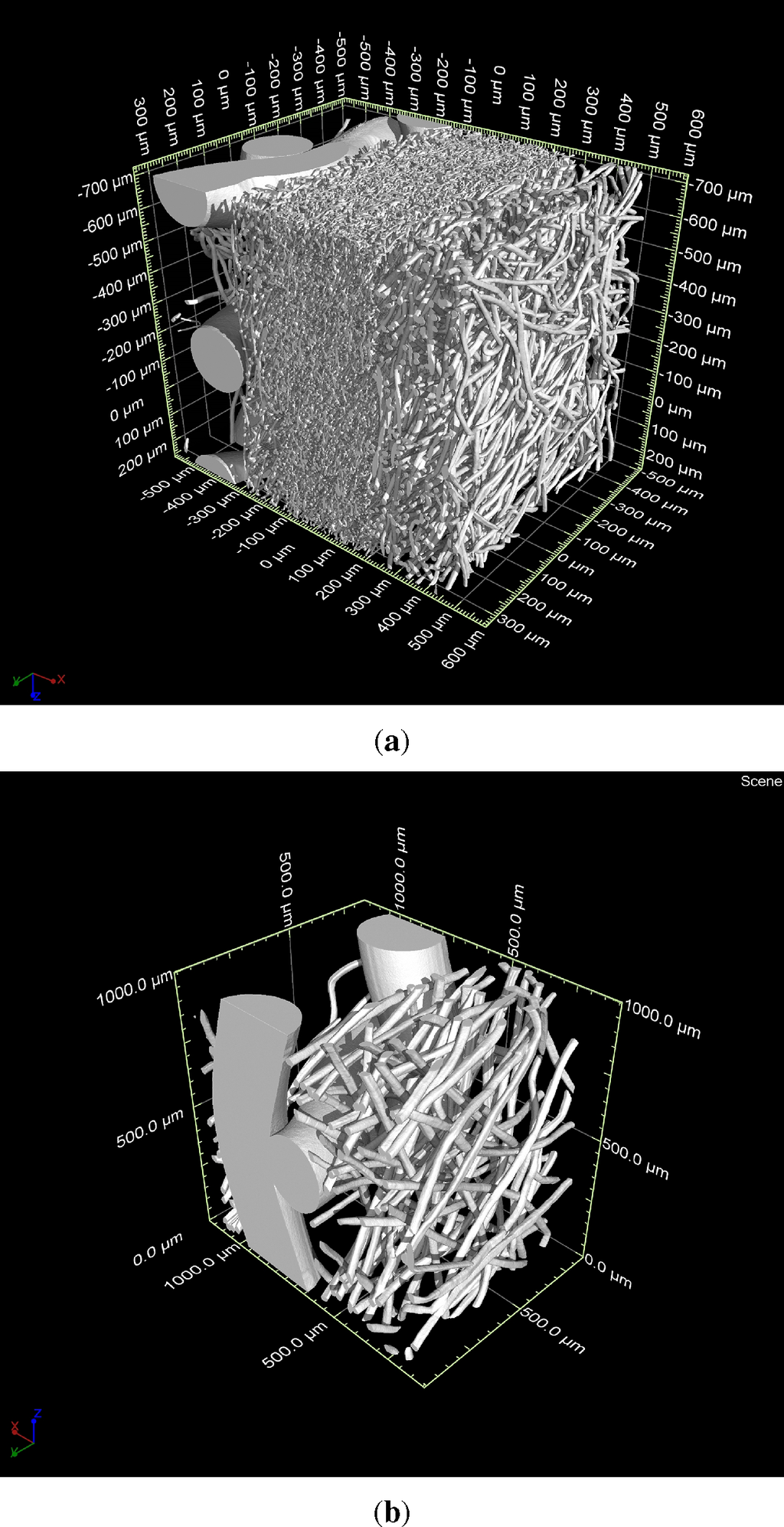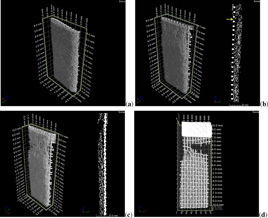 - Tsarouchas, D.; Markaki, A. Extraction of fibre network architecture by X-ray tomography and prediction of elastic properties using an affine analytical model. Acta Mater. 2011, 59, 6989–7002. [Google Scholar]