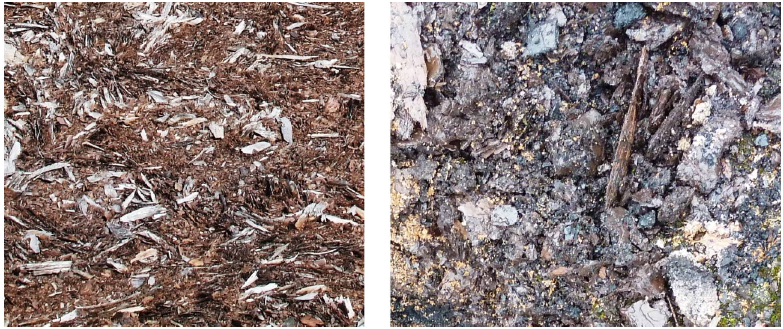 The incineration temperature was chosen so as to avoid vaporization of Cu compounds as discussed above. If no Cu vaporization took place, the amount of Cu/mass unit in the collected bottom ash would have been about 10 and 3 times higher in A1aoven and in B1a, respectively, compared to the original bark samples. The reason for the higher ash fraction in sample B1, i.e., lower Cu content/mass unit, is most likely due to the non-volatile soil particles present in the bark fraction, which was not the case in the bark from site A (Figure 1). Sample A1aincin, i.e., the bark sample incinerated in a real incineration plant, resulted in less bottom ash compared to the other samples because of the continuous gas flow during the incineration procedure. In this study no fly ash was collected, in which the volatilized metal compounds are captured. However, in a real incineration situation the fly ash is collected in the flue gas cleaning system and thus interesting metals can also be recovered from that ash fraction, although this was not studied here.