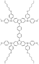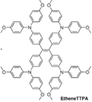 Tetra{4-[N,N-(4,4′-dimethoxydiphenylamino)]phenyl}ethane (TAE-1) is a molecule very similar to Spiro-OMeTAD. The only difference is the presence of two double bonds replacing the double simple liaison at the center of the molecule. This molecule, used un-doped in a direct device architecture, allowed reaching a PCE of 11% [22].