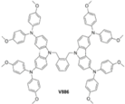 Another serious candidate reported in the recent literature for the replacement of Spiro-OMeTAD is the methoxydiphenylamine-substituted carbazole twin derivative (referred to as V886) [26]. These small molecules are easily synthetized from a reaction of 1,2-bis(bromomethyl)benzene with 3,6-dibromocarbazole, followed by a palladium-catalyzed C–N cross coupling reaction with 4,4′-dimethoxydiphenylamine. This hole transporting material has been tested on the classical CH3NH3PbI3 perovskite solar cell containing FTO and mesoporous TiO2 as the photo anode. Compared to the best reference cell (PCE of 18.36%), the V886-based device showed a maximum power conversion efficiency of 16.91%. A high fill factor was also reported (73%), as well as a high photocurrent density of 21.38 mA·cm−2, an open-circuit voltage of 1.085 V and very low hysteresis. It is interesting to note than V886 is soluble in THF and chlorobenzene. Furthermore, to achieve the suitable conductivity level, V886 was oxidized using, for example, FK209 (cobalt(III) complex). In this way, a conductivity of 4.2 × 10−5 S·cm−1, comparable to that of Spiro-OMeTAD, was measured. One important advantage of this molecule is the simplicity of its synthesis.