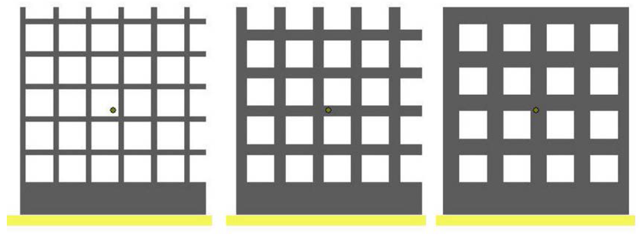 Porous designs with various strut thickness: 0.5 mm (left), 1 mm (middle), and 1.5 mm (right).