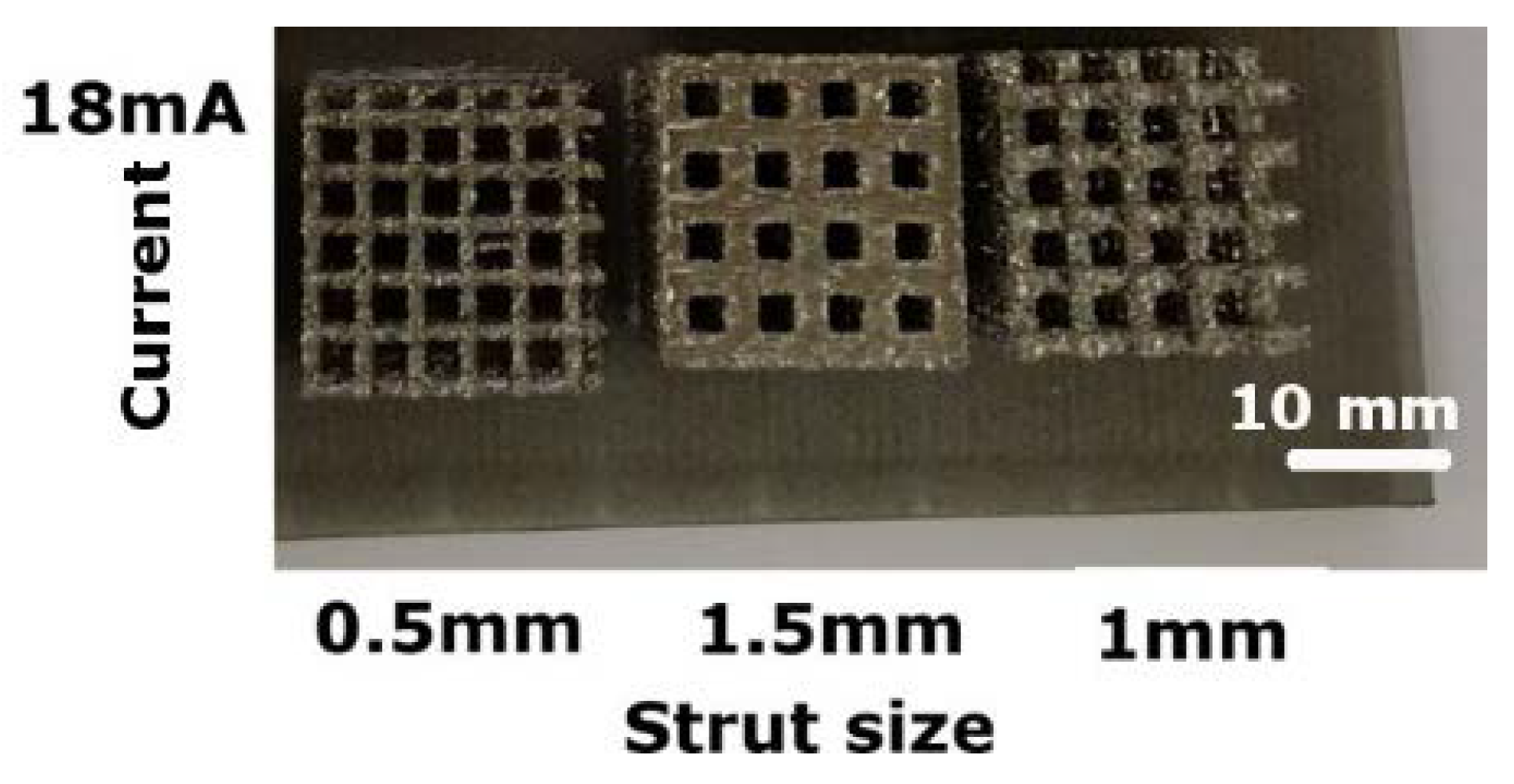 | Strut Size (mm) | Current (mA) | Scan Strategy | |||