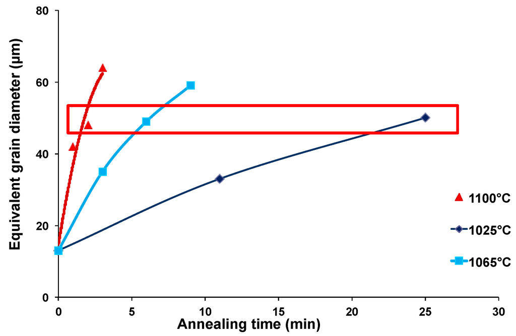 Grain growth experiments were performed on semi-cylindrical samples machined from an Inconel™ 718 billet at three different temperatures above the solvus for the delta phase and for different times (Table 1).