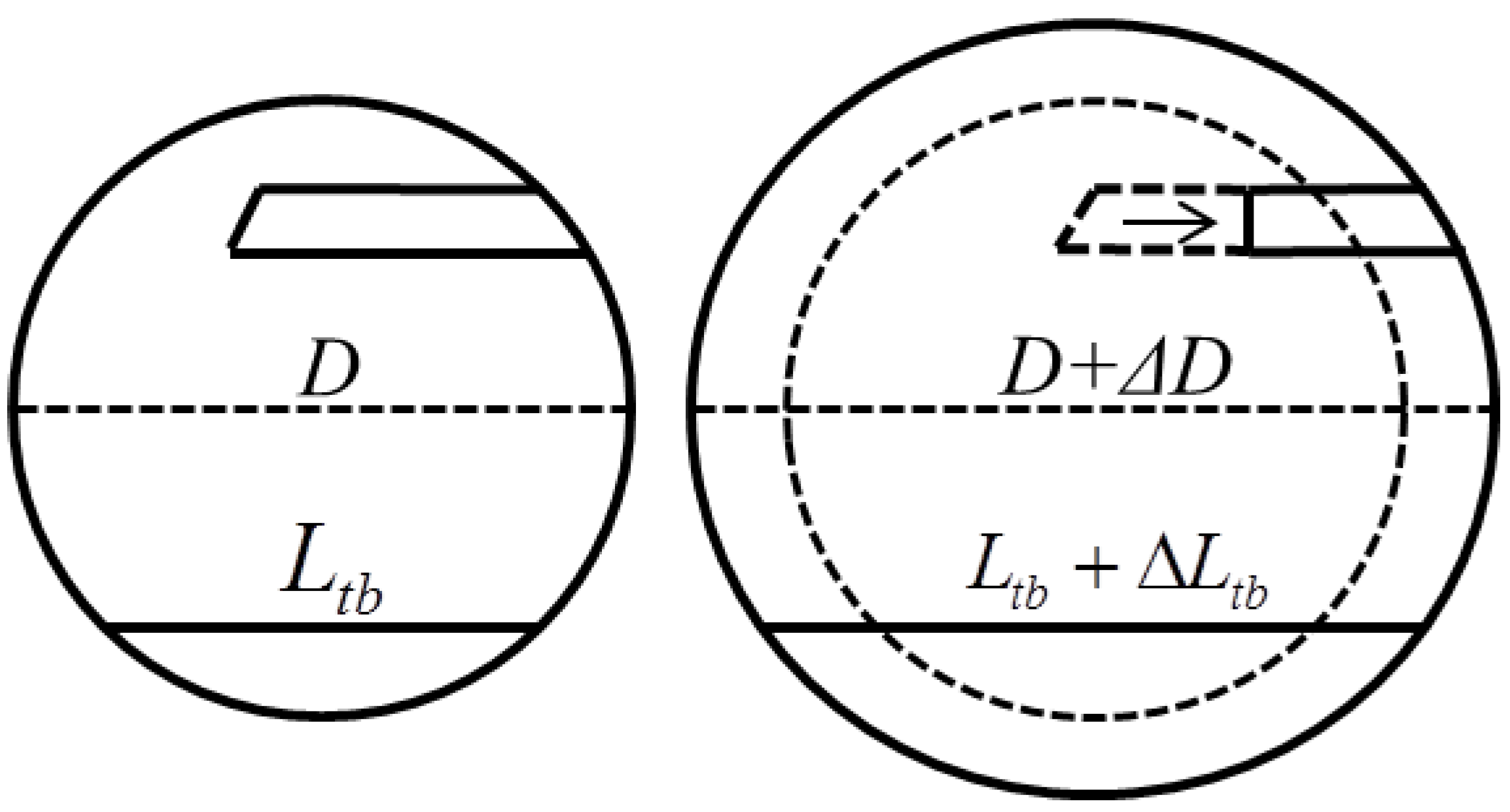 - The diameter change of each representative grain is calculated using Equation (4). The volume conservation is naturally verified.