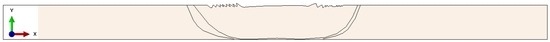 For metallurgical characterization, the FSWed sheets were water-jetted perpendicular to the welding direction. The cut section was then mounted and polished, first on silicon carbide (SiC) paper (grit size from 240–1200), and secondly on 6 µm, 3 µm, 1 µm, and finally 0.3 µm alumina-oxide polishing wheels. To reveal the optical microstructure the polished specimens were etched using using Kroll’s reagent (distilled water, 92 mL; HNO3, 6 mL; HF, 2 mL). The macrographs with were captured with a stereomicroscope (Nikon SMZ1000, Nikon Corporation, Tokyo, Japan) and analyzed using NIS element software, to observe the quality of the weld produced with the adopted set of welding parameters.