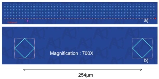 (a) Indention pattern on the transverse cross-section of the weld; and (b) distance between two indent at 700× magnification.