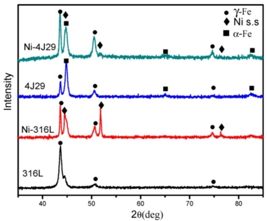 316L stainless steel (Fe–18Cr–11Ni) is widely used for its low corrosion rate, which is attributed to its inner chromium oxide region and outer mixed iron–nickel oxide region [1,2]. Kovar (Fe–29Ni–17Co) alloys possess the advantages of low-temperature constant expansion, and thermal expansion properties and a good thermal matching performance similar to Si, Ge, and glass, thus obtaining wide application in the electronics industry [3,4,5]. Joining stainless steel and Kovar alloys has been widely done in aerospace, nuclear, and electronic industries for technical and economic reasons [6,7,8]. However, due to the differences in thermo-mechanical and metallurgical properties, many obstacles to achieving good dissimilar joints have been confronted, such as precipitates, intermetallics, and distortions of the weld interface, which is detrimental to joint properties [1,6,7,8,9].