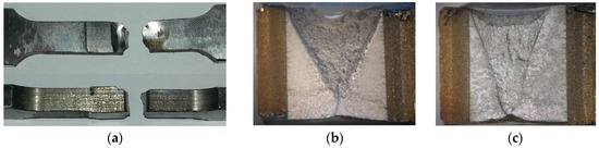 As expected, all specimens fractured in the specified sections narrowed by stress concentrators at the HAZ of the welding joint (Figure 2).