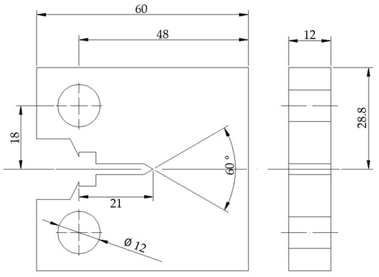 The tensile test was conducted in accordance with ASTM E8 [10]. In addition, the fracture toughness tests, i.e., the CTOD and Charpy-V impact tests, were carried out according to BS 7448 Part 2 and ASTM E23, respectively [11,12]. As shown in Figure 4, compact tension specimens 12 mm in thickness, 48 mm in width, and 57.6 mm in height were used for fracture toughness tests. CTOD test specimens for the heat affected zone (HAZ) were fabricated 1 mm from the weld fusion line (F.L.).