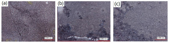 Figure 7 shows optical morphologies of the coated samples which were immersed in 3.5 wt % NaCl solution for 12 days. It is obvious that the MAO coatings were completely corroded after immersion for 12 days. Without the protection of the MAO coating, the as-cast sample presents the typical pitting morphology. The severe local corrosion happened to the coated samples with four and eight passes of ECAP. The MAO coating on the UFG 16-pass AZ91D alloy is rather effective at protecting the Mg matrix due to its uniform and compact structure. Besides the well-known strengthening-toughening effect, a large number of ECAP passes also can change localized corrosion to general corrosion and increase surface protection of the MAO coatings on the UFG Mg alloy with broken second-phase particles.