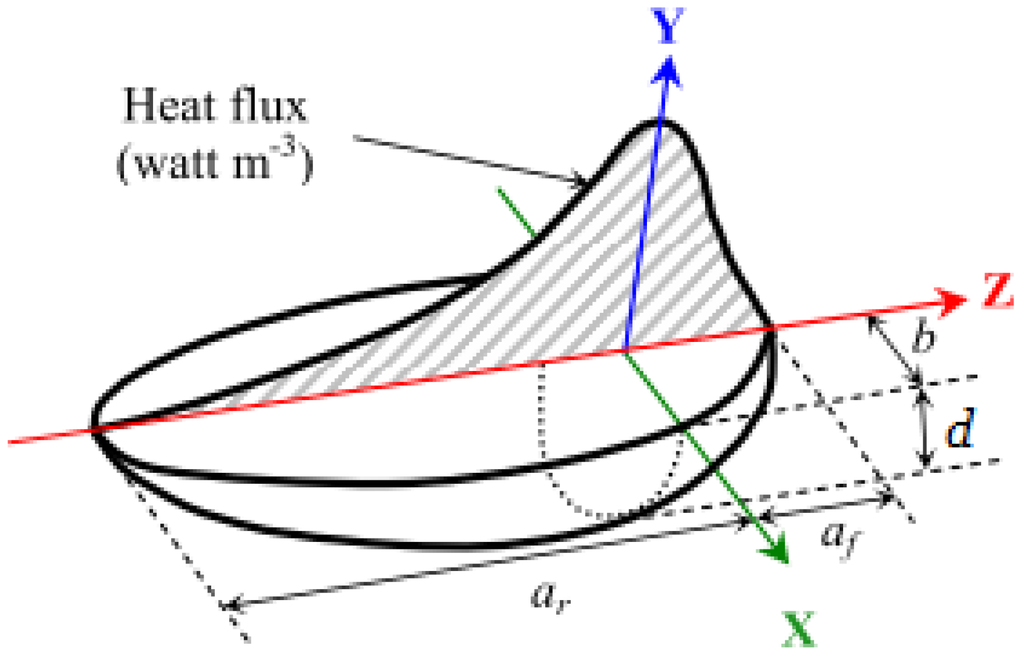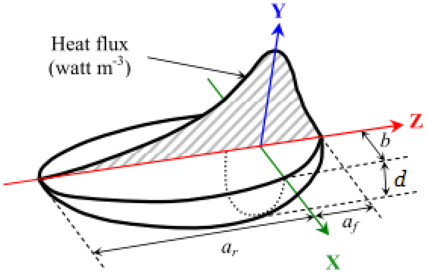 - Goldak, J.; Chakravarti, A. A new finite element model for welding heat sources. Metall. Trans. 1984, 15, 299–305. [Google Scholar] [CrossRef]