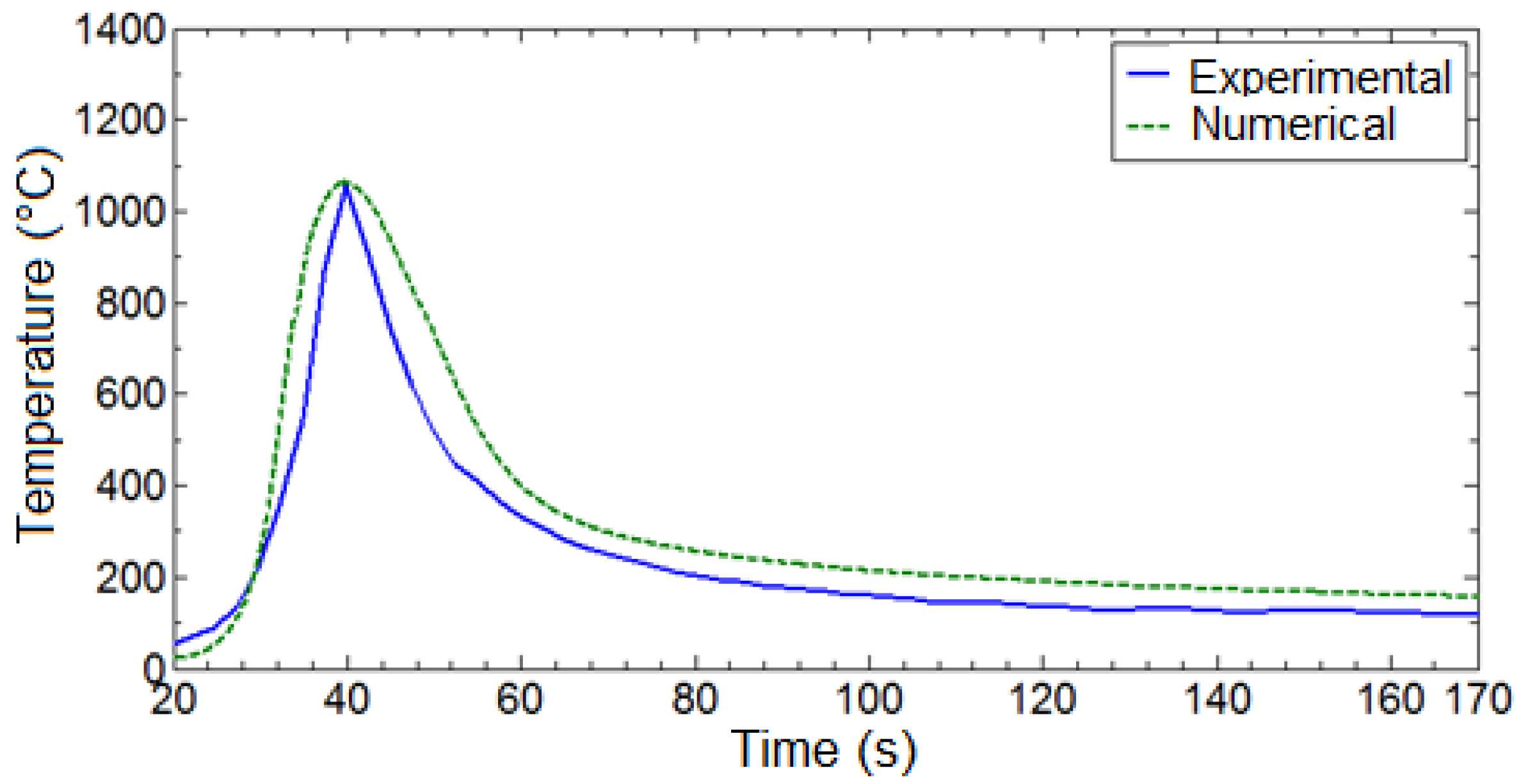 - Attarha, M.J.; Sattari-Far, I. Study on welding temperature distribution in thin welded plates through experimental measurements and finite element simulation. J. Mater. Proc. Technol. 2011, 211, 688–694. [Google Scholar] [CrossRef]