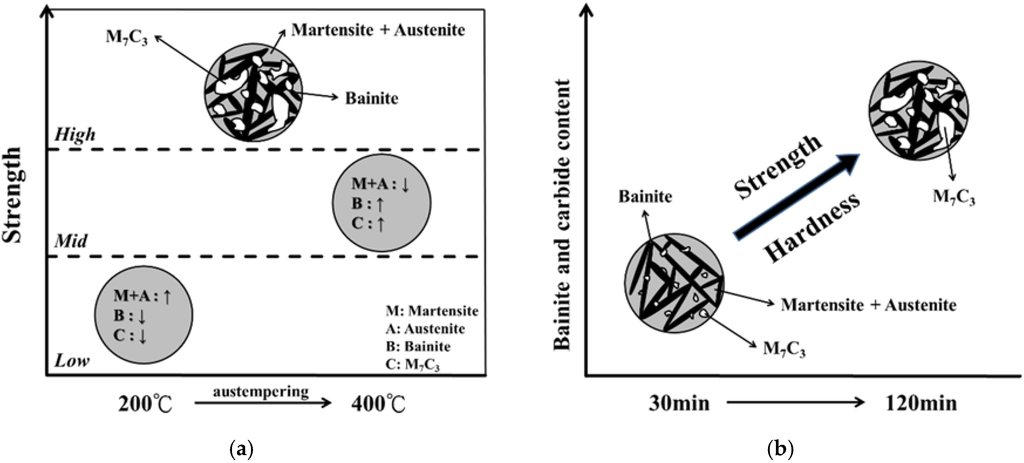 - Sajjadi, S.A.; Zebarjad, S.M. Isothermal transformation of austenite to bainite in high carbon steels. J. Mater. Proc. Technol. 2007, 189, 107–113. [Google Scholar] [CrossRef]