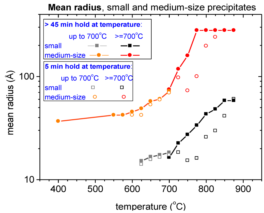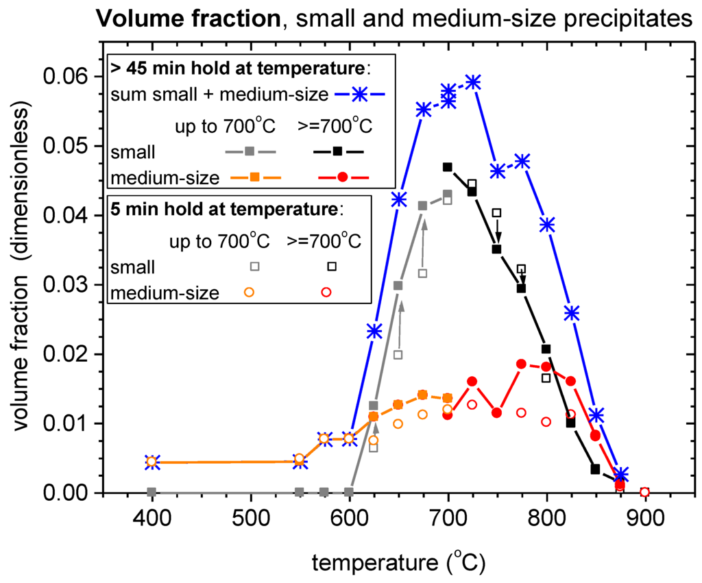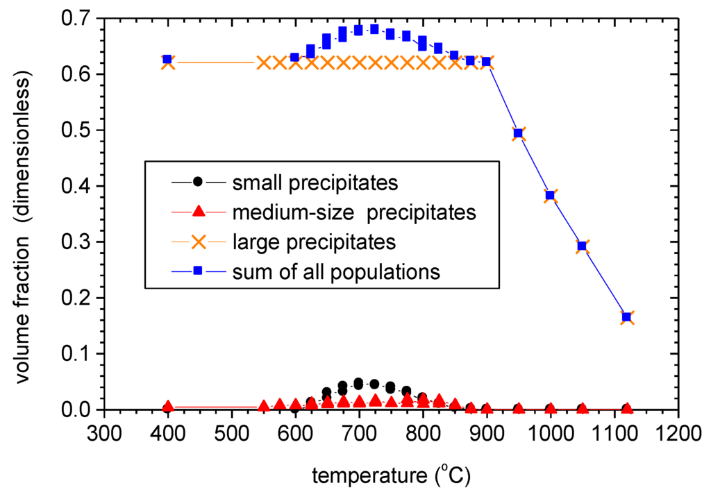 3.2. Evolution and Dissolution of Precipitates between 700 and 900 °C