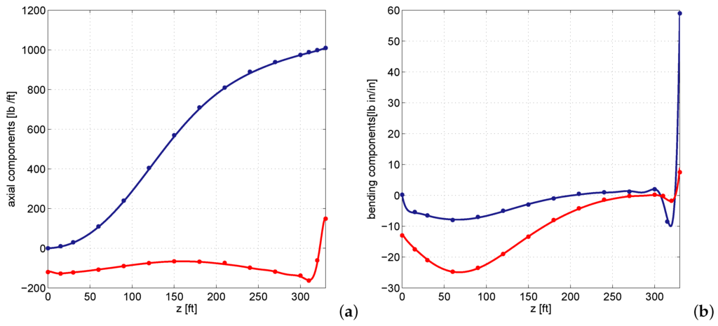 The entries of differential operator are of the form: (; ), which represents the contribution to the equilibrium Equations (6) and (7) from the component of (Equation (36)). In particular, the term stands for pre-multiplication of the function by the component of ; the term stands for pre-multiplication of the function by the first derivative of the component of with respect to z; the term stands for pre-multiplication of the function by the second derivative of the component of with respect to z.
