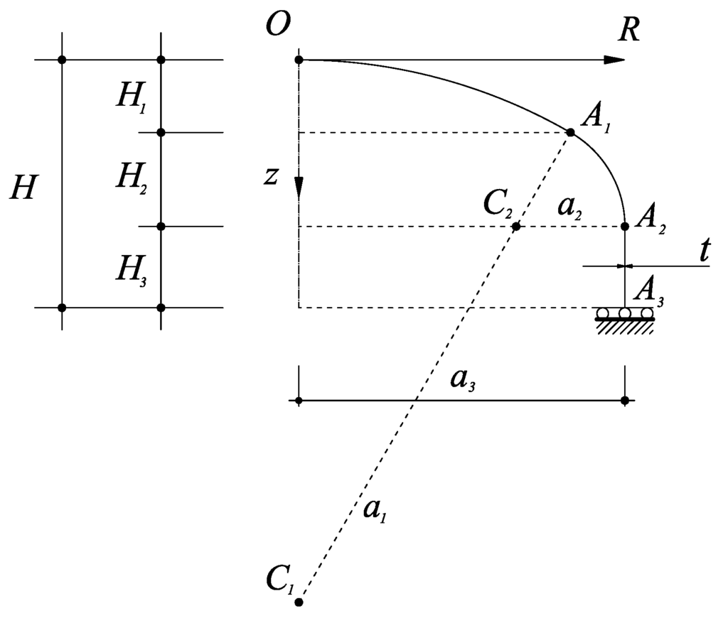 Given the meridian equation , the first fundamental form for shells of revolutions and the principal curvature radii of meridian read [37]: