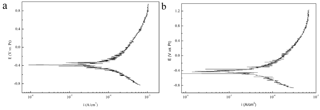 The PAR2273 Electrochemical Measurement System manufactured by EG & G was used for all the electrochemical measurements, which also has the ability to compensate the resistance between reference electrode and working electrode. In galvanic corrosion measurement, the ratio of anodic area to cathodic area is 1:2. All the electrochemical measurements were repeated at least three times.