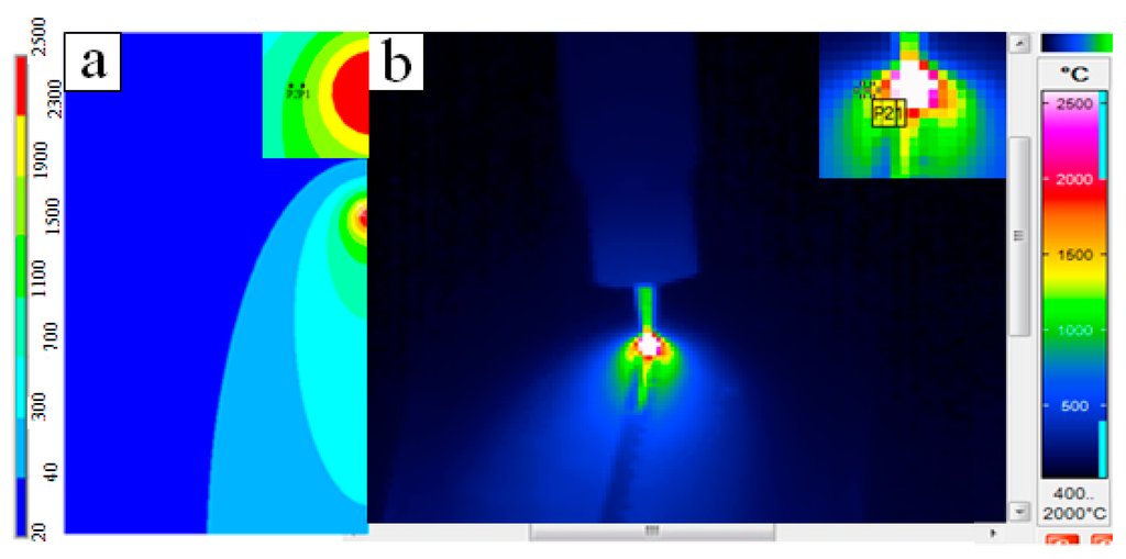 In the welding process, the surface temperature field was recorded by InfraTec VarioCAM hr, FLIR Systems (FLIR Systems Co., Ltd., Boston, MA, USA). The camera resolution is 384 × 288 pixels. The recording temperature ranges from 400 °C to 2000 °C. The acquisition frequency of the temperature is 50-times per second. The infrared thermograph and the welding gun are located in the same plane, which is parallel to the welding direction.