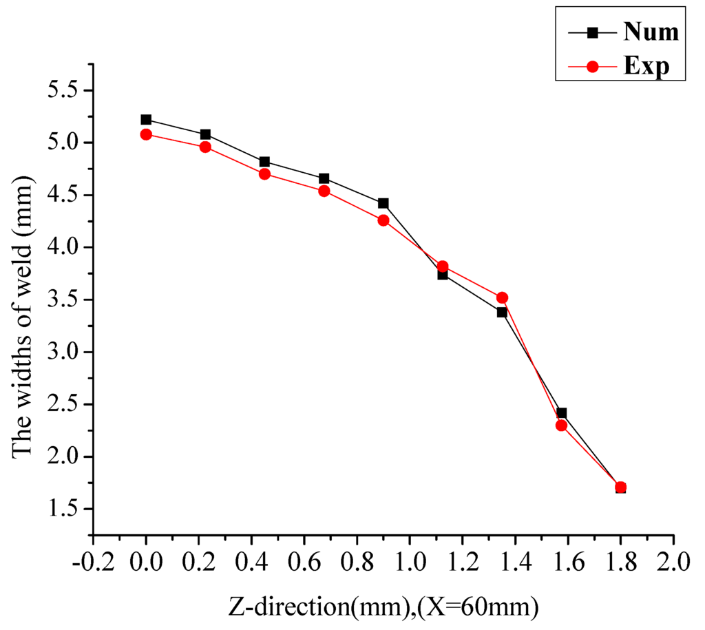 - There is satisfactory agreement between the calculated weld dimensions and the experiment results of argon tungsten-arc welding of 443 stainless steel. The deviation of the simulation is less than 7%. This can be used to select the appropriate welding parameters to obtain a good weld size before welding.
