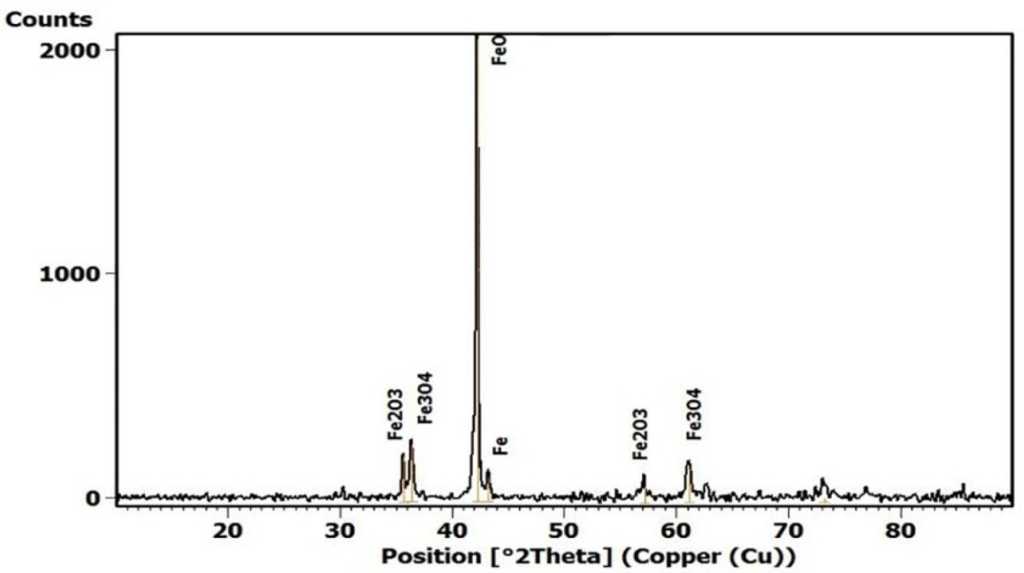 X-ray diffraction (XRD) results of oxide scale for Steel 1.