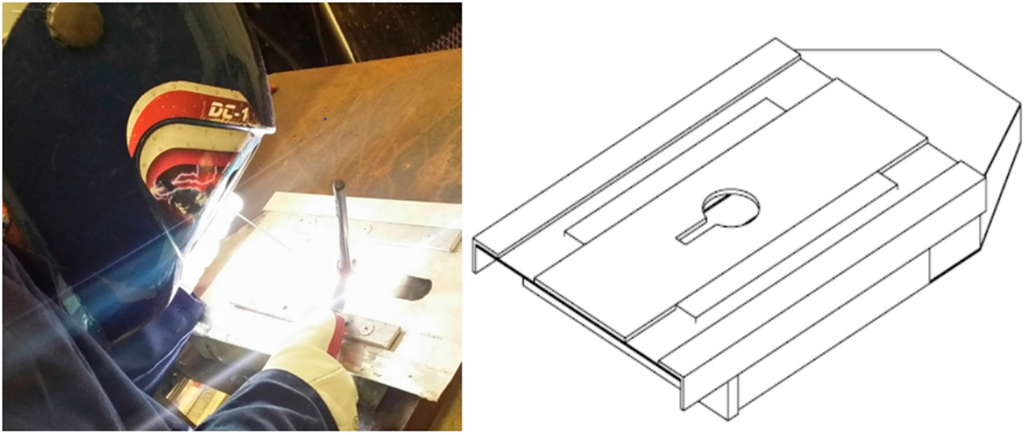AISI 304 stainless steel is widely used in the chemical, organic liquids, aeronautical, naval, power generation, nuclear industries, as well as in construction, pharmaceutical and food handling, and transport. It is also used in cutlery, sinks, pipe-lines, vessels, tanks, elevator rendering and many other applications. AISI 316L stainless steel is widely used in the chemical and petrochemical industry. It is used as a filler material in welding and due to its low carbon content prevents the formation of chromium carbide at the grain boundaries. Both chemical compositions are shown in Table 1. The test specimens were prepared from plates of AISI 304 stainless steel measuring 180 mm in length, 75 mm in width, and 1.5 mm thick; and with dimensions once welded of 180 mm in length, 150 mm in width, and 1.5 mm thick.