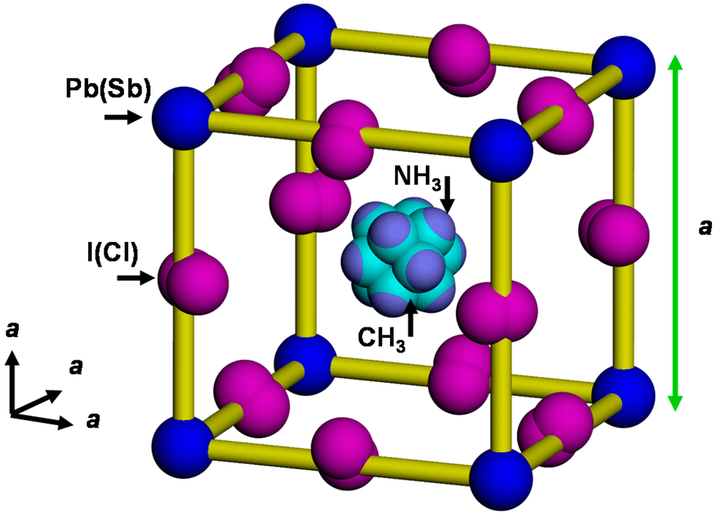 Structure model of cubic CH3NH3Pb(Sb)I3(Cl).
