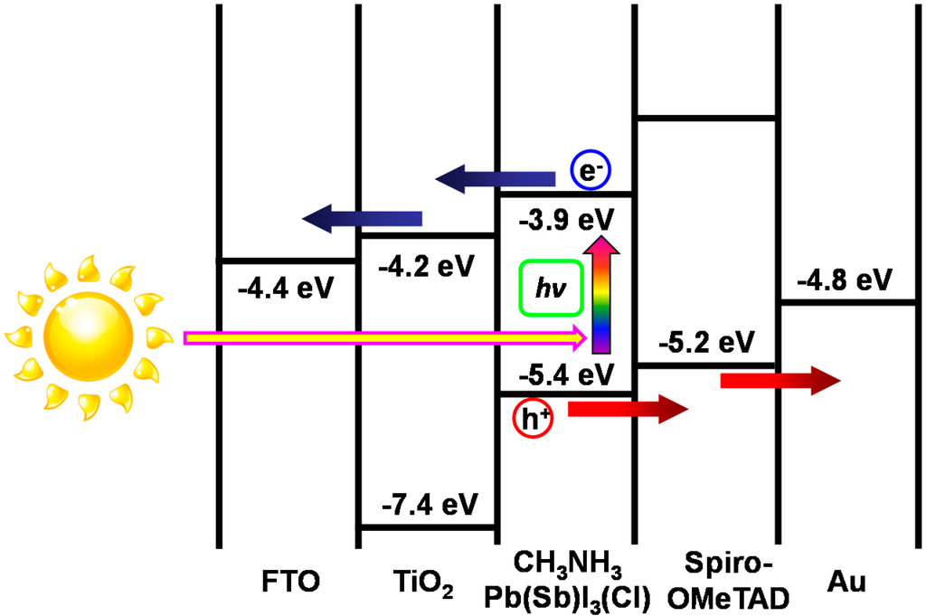 Energy level diagram of CH3NH3Pb(Sb)I3(Cl) cells.