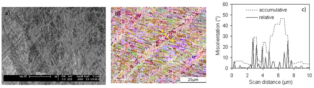 - Humphreys, F.J.; Bate, P. Measuring the alignment of low angle boundaries formed during deformation. Acta Mater. 2006, 54, 817–829. [Google Scholar] [CrossRef]