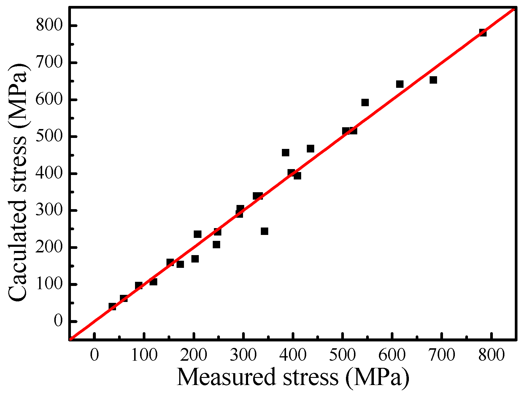 The scatter map of the predicted and experimental stress values.