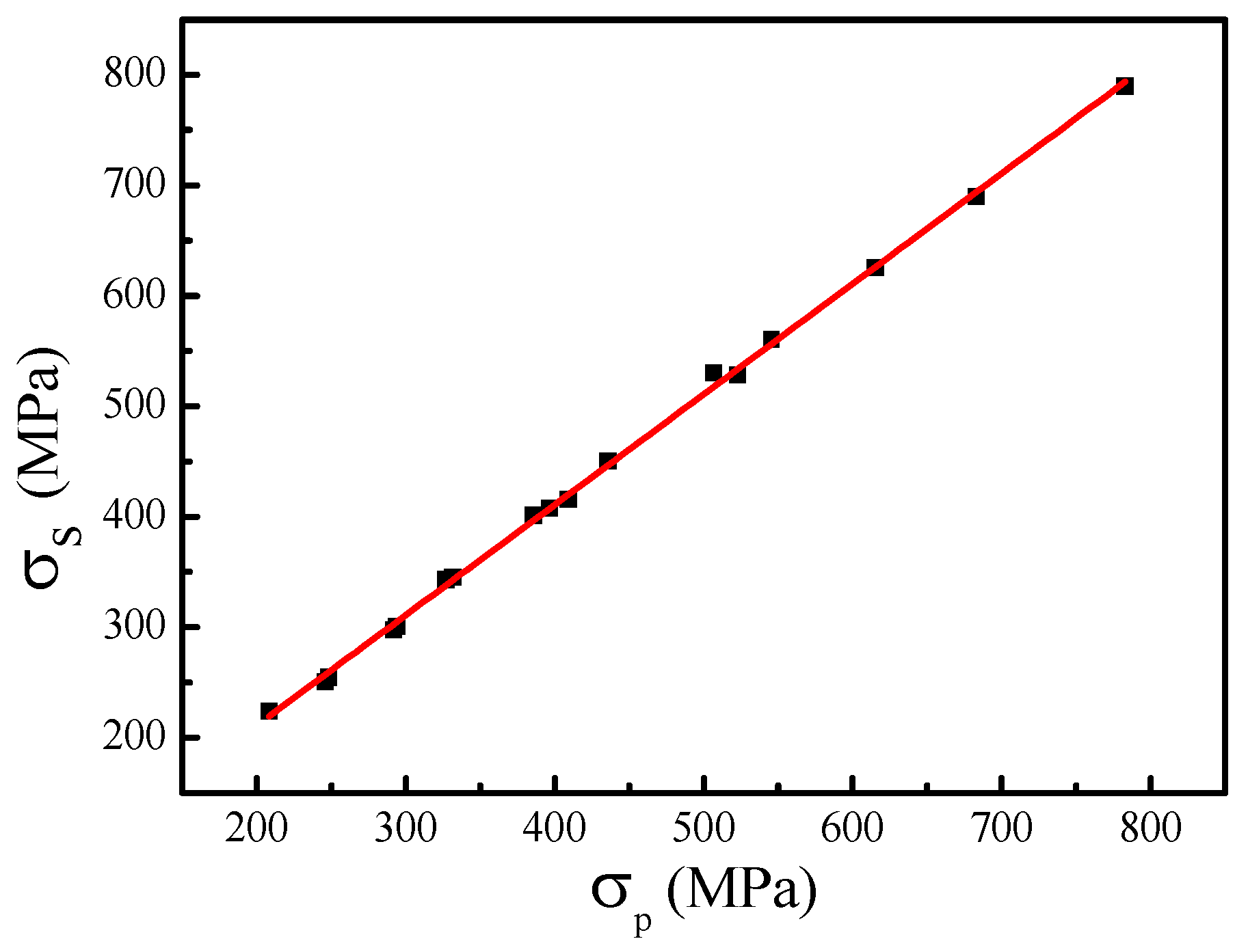 Obviously, in order to calculate the flow stress, the three parameters of σ0, σs, and Ω need to be determined. Usually, σs can be determined as the horizontal intercept of the tangent line of θ-σ plot through the inflection point, as shown in Figure 7. Figure 12 shows that there is a good linear relationship between σp and σs; the mathematical expression of this relationship can be expressed as: