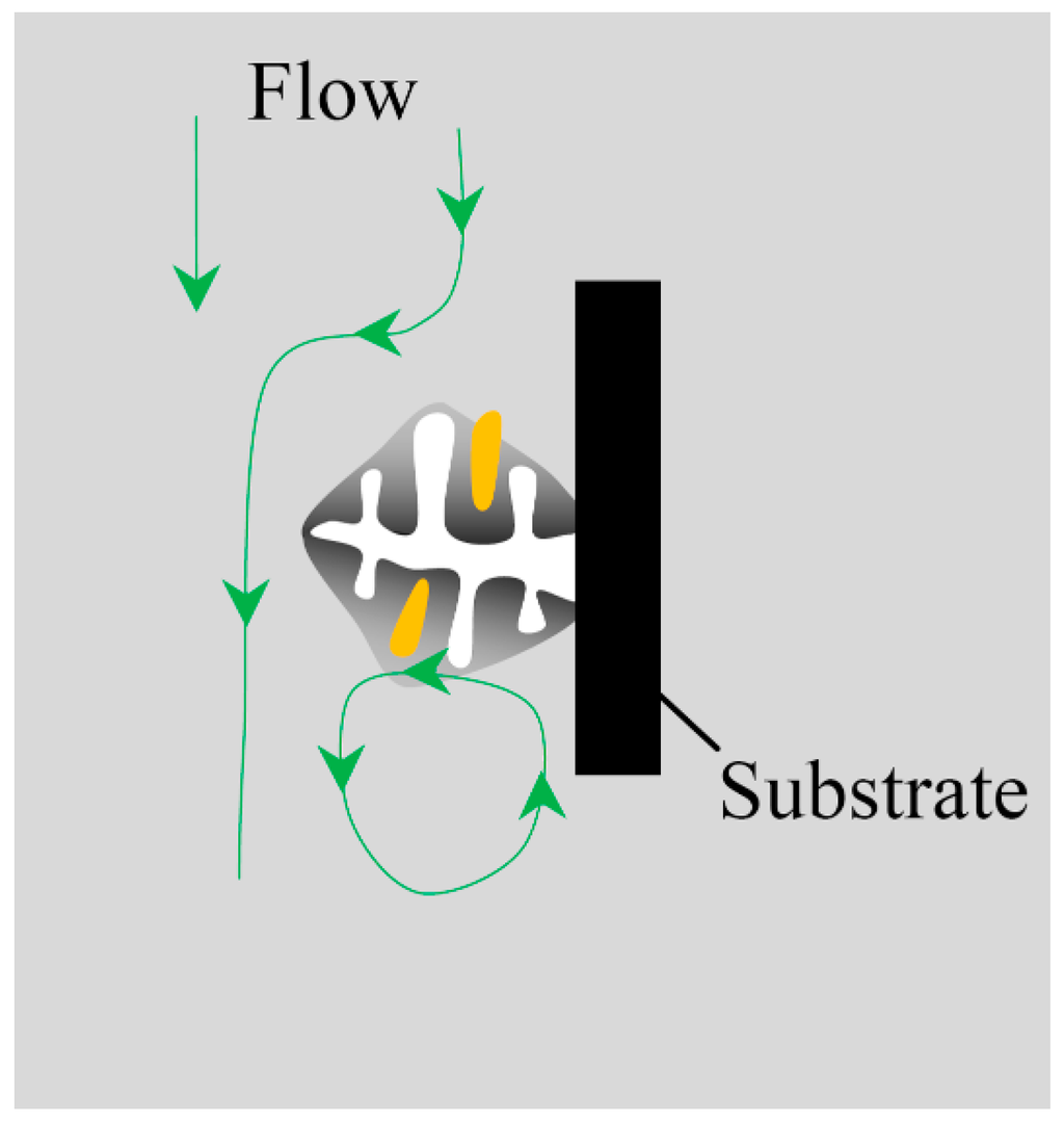 Schematic view of the high-order dendrite arms detachment under the forced flow (yellow: detached dendrite arms).