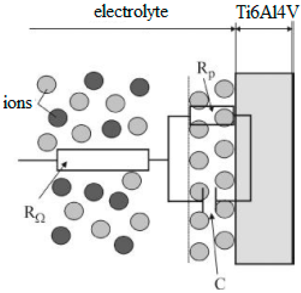 Titanium and Ti-based alloys are considered to be the most attractive metal materials for biomedical purposes and form a huge part of materials used in the construction of dental and orthopedic implants, as well as facial and plastic surgery []. The strong point is its excellent biocompatibility. It has no allergic or sensitizing effect, and moreover is not carcinogenic or toxic. A layer of titanium oxide even gives bacteriostatic effect. Other beneficial properties of titanium alloys are their low electrical conductivity, high corrosion resistance, predictable thermodynamics, and good strength-to-weight ratio. Titanium has the ability to self-passivate in most corrosive environments, although it belongs to the non-noble metals with high negative potential (−1633 mV). The thickness of TiO2 passivation layer varies between 20 and 50 nm, it protects the material against corrosion and ensures its bio-inertness. The advantage of this passivation layer is the self-restoration if broken e.g., during the machining of the material. Titanium passes either to the active state, namely in reducing environments with low pH, or in environments where soluble titanium complexes are formed. Hydride layer TiH2 is formed under conditions with hydrogen depolarization. The layer has the same passivation ability at the small concentrations of non-oxidizing acids. The formation of a hydride or oxide layer is also linked with changes of titanium electrode potentials.