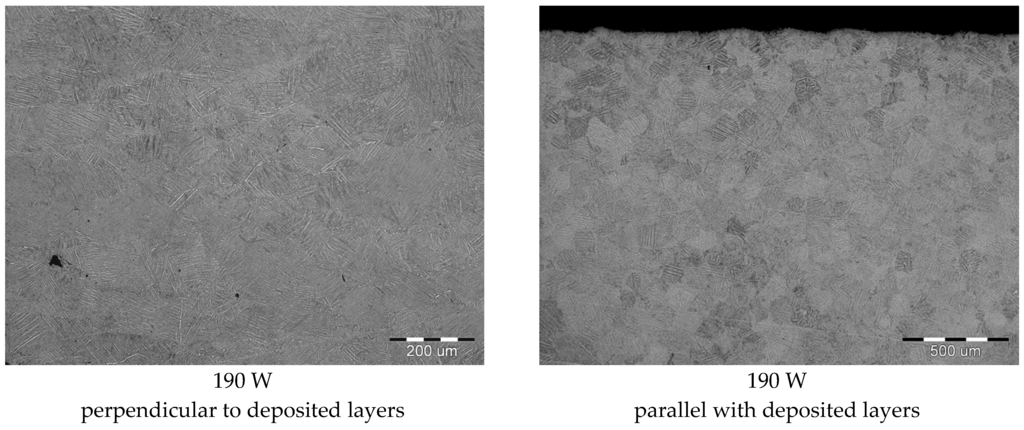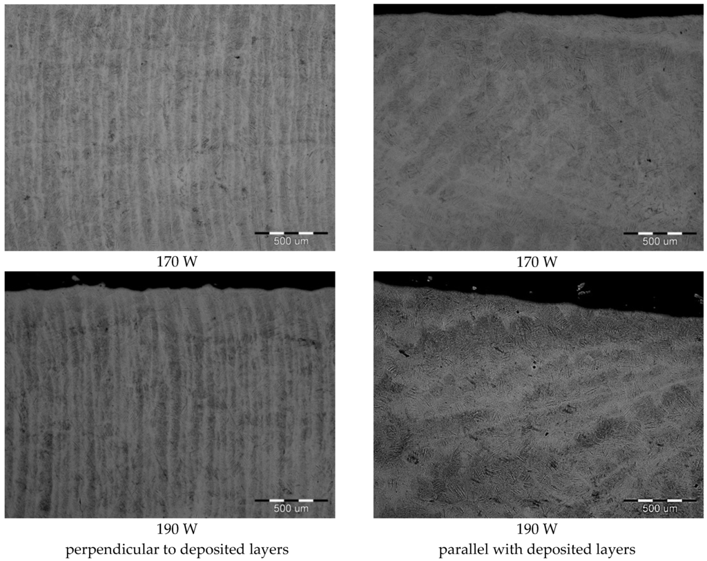 - microstructures do not show any significant differences with respect to different laser powers