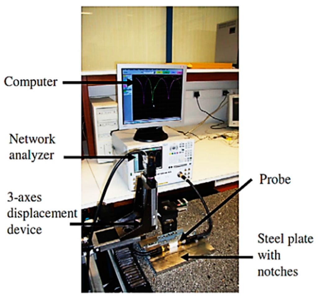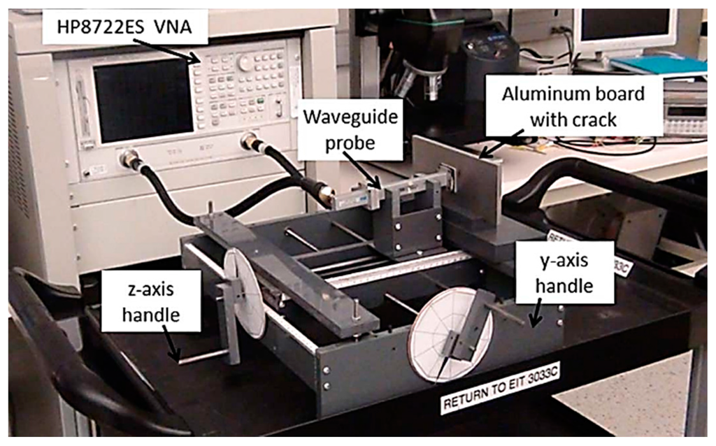 Before 1993, microwave NDE methods were used for the detection of surface cracks in metals; however, these methods were not fully successful [5,6,7,8]. After 1993, near-field microwave crack detection techniques and approaches that use open-ended waveguide probes were introduced [9,10,11,12,13,14,15,16,17]. Investigations of the application of these methods for the detection and evaluation of fatigue surface cracks showed many unique and advantageous features, such as: