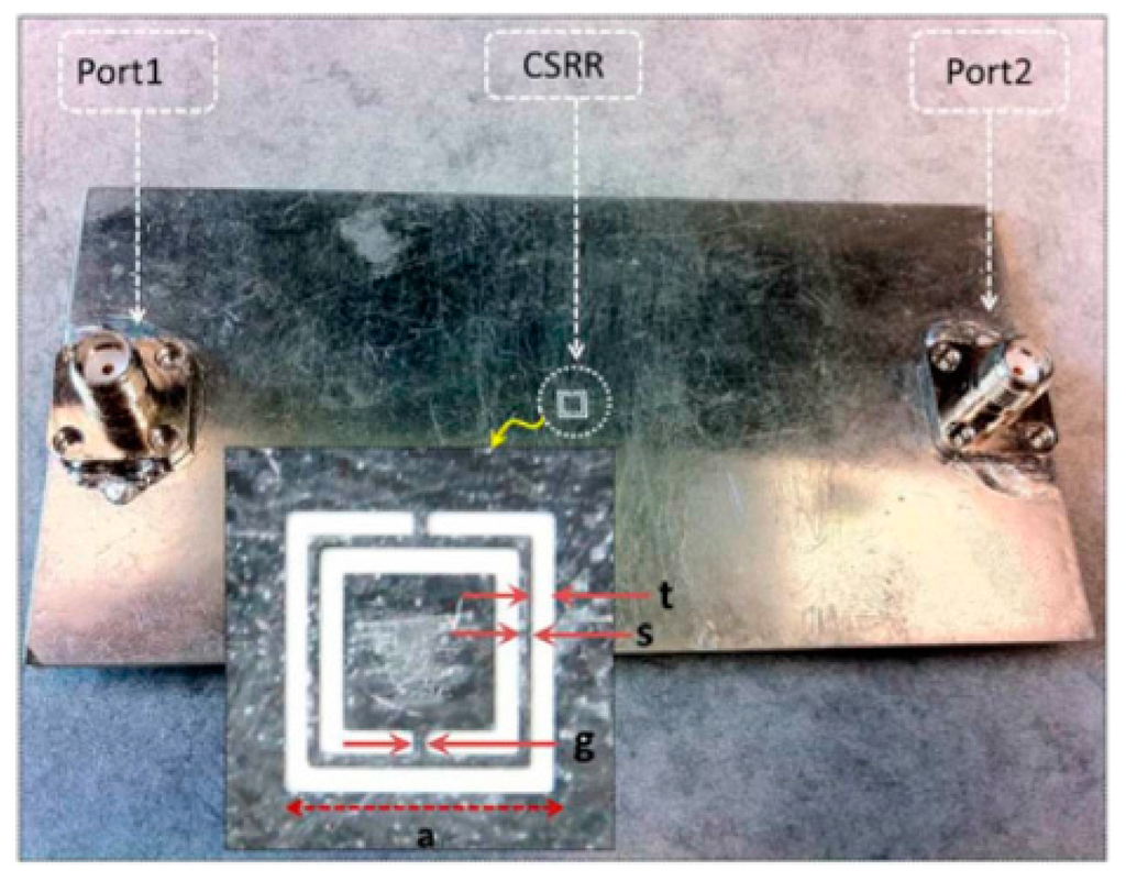 - Yun, T.; Lim, S. Sensors and Actuators A: Physical High-Q and miniaturized complementary split ring resonator-loaded substrate integrated waveguide microwave sensor for crack detection in metallic materials. Sens. Actuators A. Phys. 2014, 214, 25–30. [Google Scholar] [CrossRef]