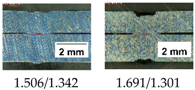 Important design parameters for laser welding have been investigated in many empirical studies. For example, Benyounis et al. [] identified the importance of laser power, focal position, and welding speed on the assembly joint’s quality such as heat input and weld bead geometry (i.e., penetration depth, widths of welded zone, and heat-affected zone). Wu et al. [] also confirmed that there is a statistically significant correlation between a joint’s quality (i.e., welding penetration and the width of a weld seam) and laser power and welding speed.