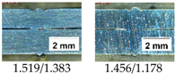 Dimensional variation caused by the deformation of metal sheets often results in a large part-to-part gap (larger than 0.3 mm); this impedes the maintenance of laser lap welding quality. Experiment #2 was conducted to investigate the effect of welding direction under the condition of out-of-tolerance part-to-part gap, and its result is summarized in Table 10 and Table 11.