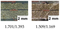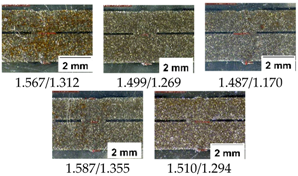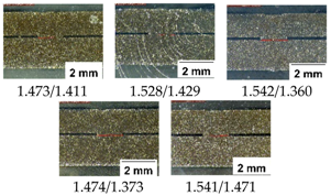 In general, for the successful laser welding of galvanized steel, it is necessary first to control the gap usually to be within 10% of the thickness of the upper part on which the laser beam is incident and additionally to allow for the minimum gap between the parts in order to provide a channel to vent out the vaporized zinc []. In general, in the case of automotive body parts, gaps of a maximum of 0.3 mm and minimum of 0.05 mm are required for laser welding of galvanized steel sheets.