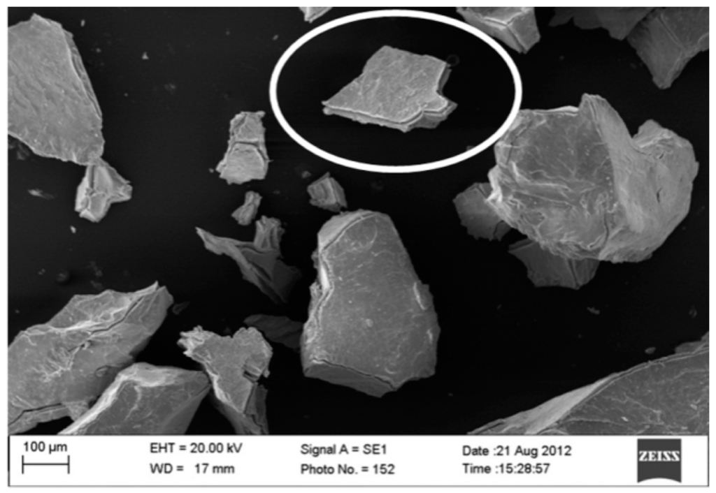 The Secondary Electrons (SE) mode enabled us to observe how the surface of each single grain was attacked by oxygen, forming an almost 10 μm-thick layer of oxide (estimated from lateral view of SEM observation). It is clearly visible how the grain tends to flake, separating the oxide layer from the bulk grain (see Figure 2).