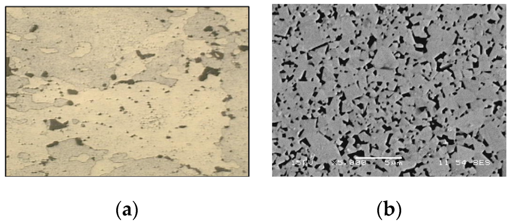 Micrographs of a polished surfaces of (a) aluminum alloy AA2024-T351 [6] and (b) cemented carbide tool WC-Co [11].