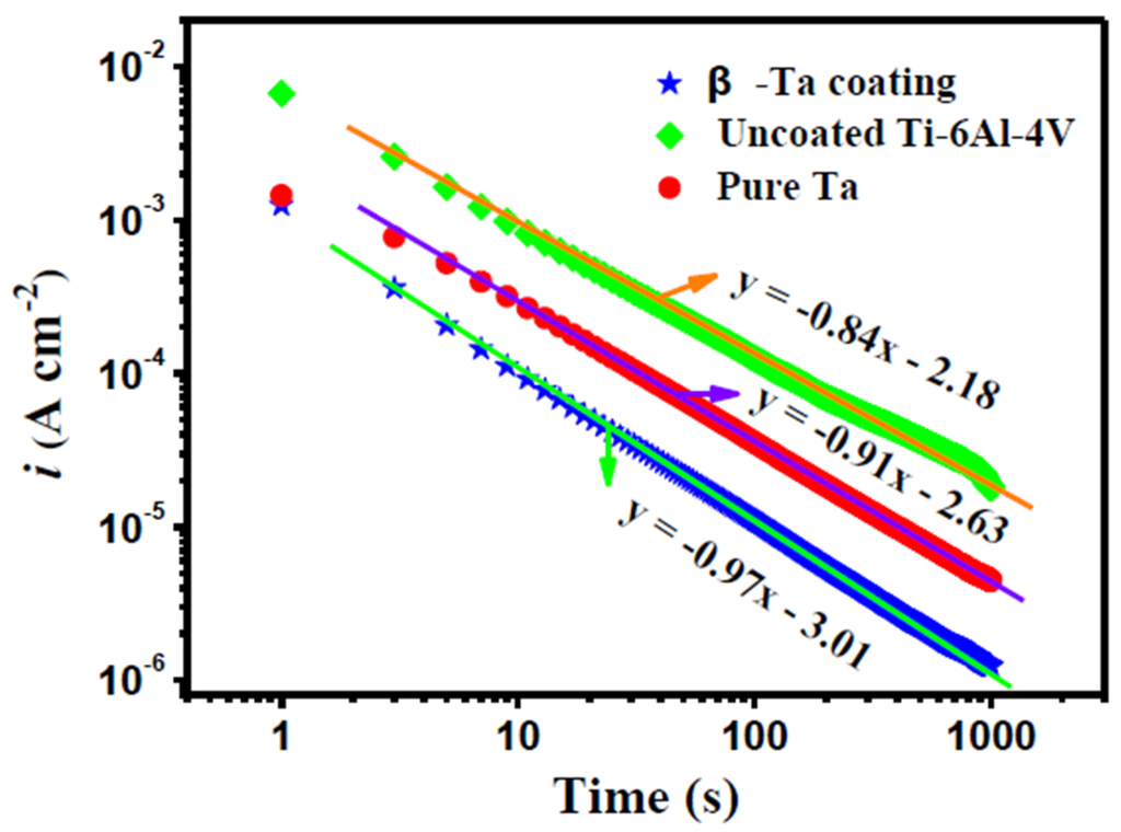 | Samples | β-Ta Coating | Uncoated Ti-6Al-4V | Pure Ta |