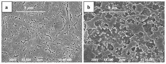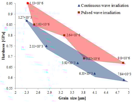 Typical microstructural images of laser-melted magnesium under, (a) continuous wave irradiation at 1.27 × 109 J/m2 and (b) pulsed wave irradiation at 1.13 × 1012 J/m2 [57].