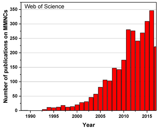 Number of publications on metal matrix nanocomposites (MMNCs) in Web of Science.