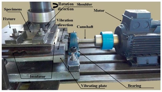 The machine used for FSVW is shown in Figure 1. The power of electrical motor is transformed into linear motion by a vibrating plate through the camshaft. The workpieces were vibrated through the vibrating plate in a direction normal to the weld line with a movement amplitude of 0.5 mm.